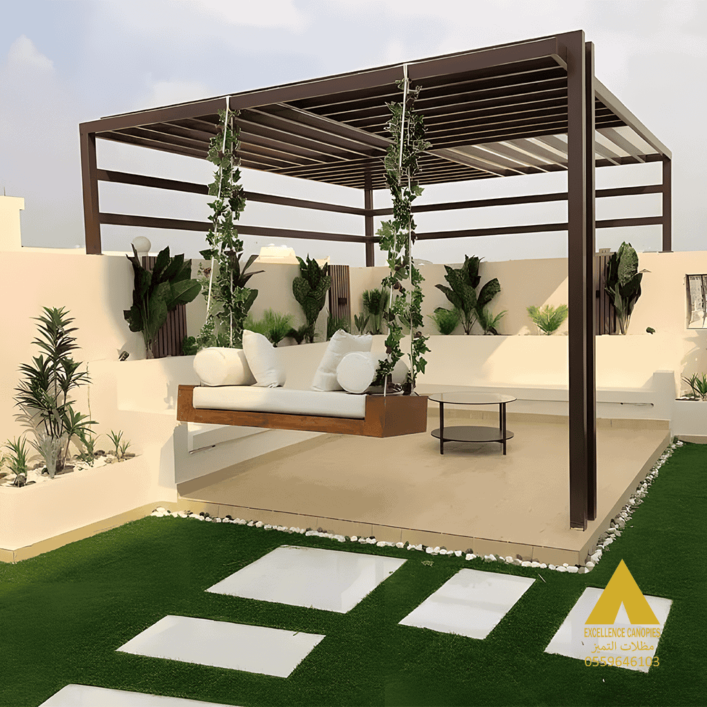 برجولات أنيقة وعملية نوفر تصاميم برجولات عصرية تناسب الحدائق والأسطح، تعزل الشمس وتضيف لمسة جمالية للمكان